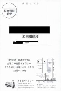 岡靖知さんから個展開催のはがきを頂いた。